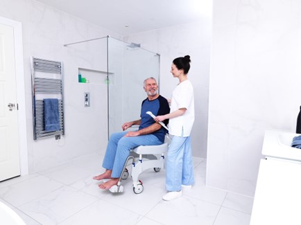 เก้าอี้อาบน้ำ คือ อุปกรณ์ที่ออกแบบมาเพื่อช่วยผู้ป่วย ผู้สูงอายุ หรือผู้พิการที่มีปัญหาเกี่ยวกับการเคลื่อนไหวร่างกาย ที่ใช้ในห้องน้ำหรือห้องอาบน้ำ มีวัตถุประสงค์เพื่อ ช่วยให้ผู้ใช้สามารถนั่งทำความสะอาดร่างกายได้อย่างปลอดภัย ไร้กังวล แล้วยังช่วยลดการเกิดอุบัติเหตุต่างๆที่อาจจะเกิดขึ้นภายในห้องน้ำอีกด้วย เช่น อาการปวดเมื่อยตามตัวหรือข้อ อาการหน้ามืดเป็นลม เป็นต้น